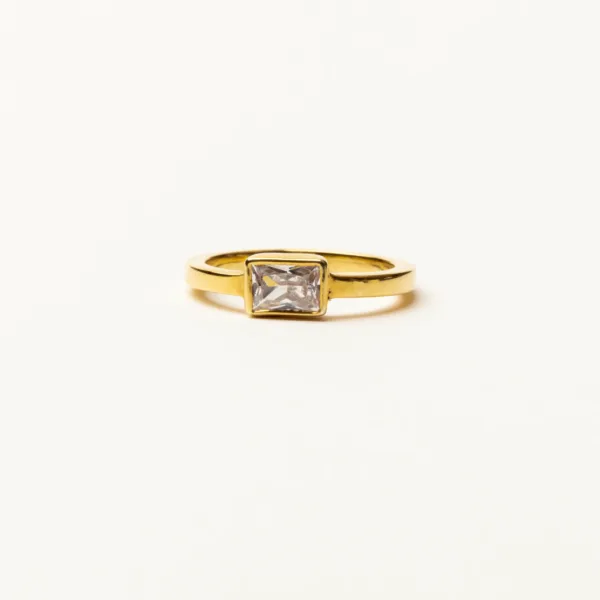 Feito em prata 925, o anel conta com uma pedra retangular zircónia de cor Cristal. O anel pode ser banhado a ouro Branco ou ouro amarelo, sempre com um acabamento polido que transmite qualidade e requinte ao homem.