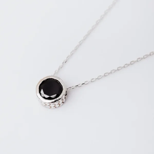 The Miquerinos Black necklace features a black zirconia set in a triangular 925 silver case plated in gold with details on the sides of mini triangles all around the piece. The plating can be yellow or white gold. The mesh is a very fine Venice that gives the necklace a refined and minimalist touch, so together with the sparkle of the zirconia, it makes this piece very special and easy to combine with all kinds of outfits.